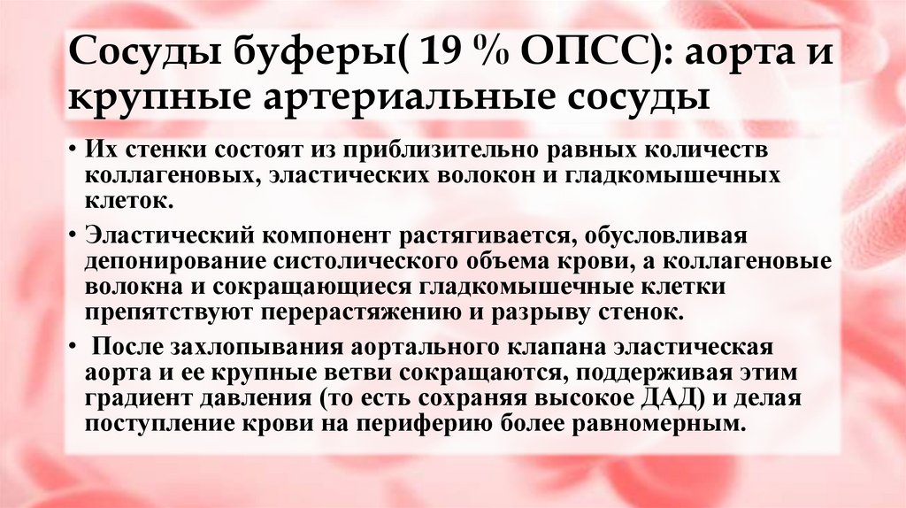 Сосуды буферы( 19 % ОПСС): аорта икрупные артериальные сосуды