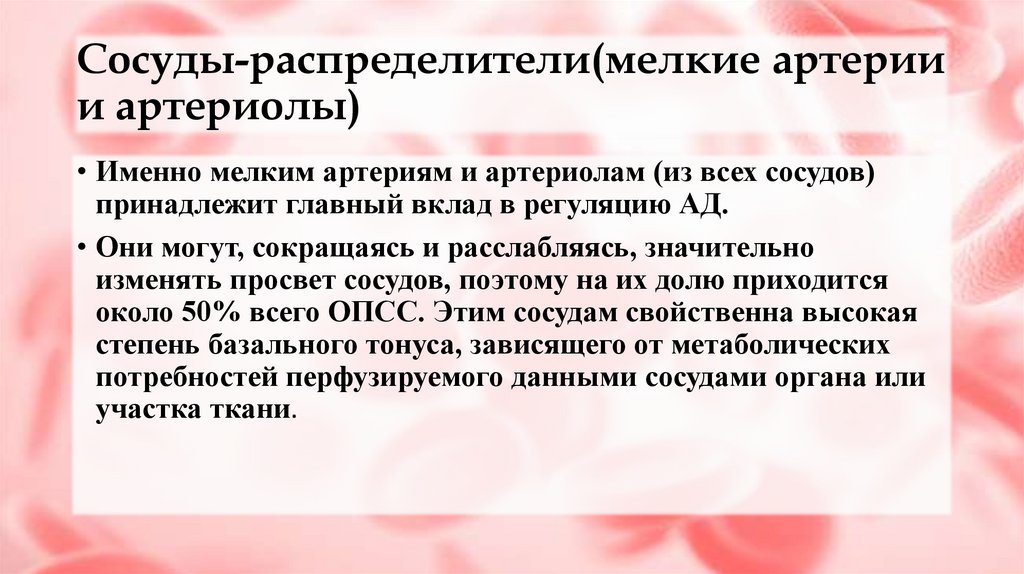 • Именно мелким артериям и артериолам (из всех сосудов)