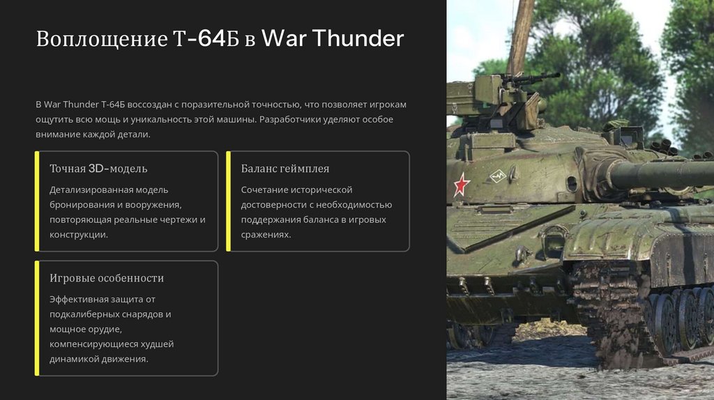 Воплощение Т-64Б в War ThunderВ War Thunder Т-64Б воссоздан с поразительной точностью, что позволяет игрокам