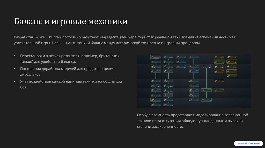 Баланс и игровые механикиРазработчики War Thunder постоянно работают над адаптацией характеристик реальной техники для обеспечения честной и