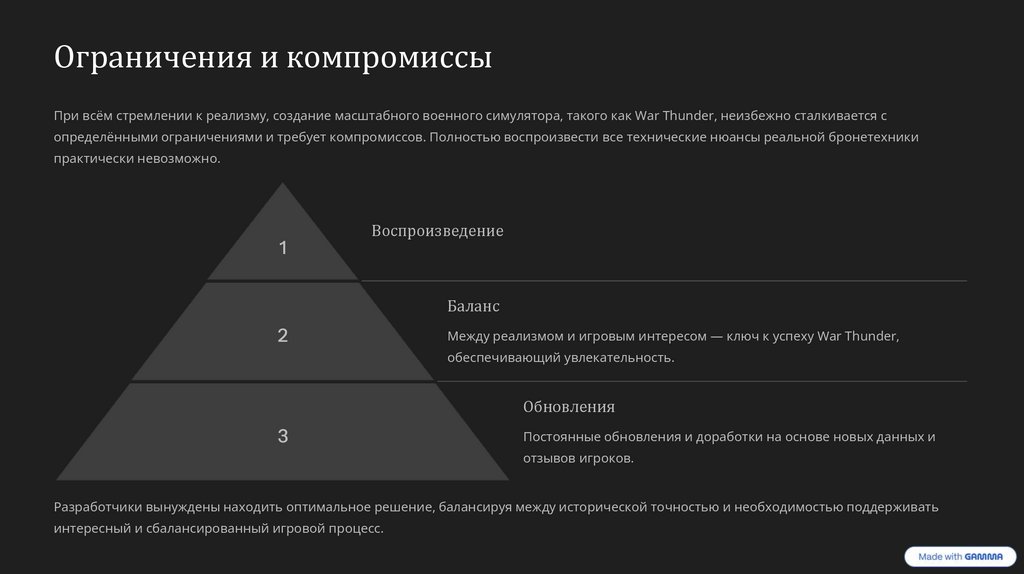 Ограничения и компромиссыПри всём стремлении к реализму, создание масштабного военного симулятора, такого как War Thunder, неизбежно сталкивается с