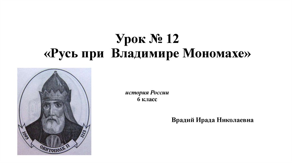 1. Урок № 12 «Русь при Владимире Мономахе» история России 6 класс