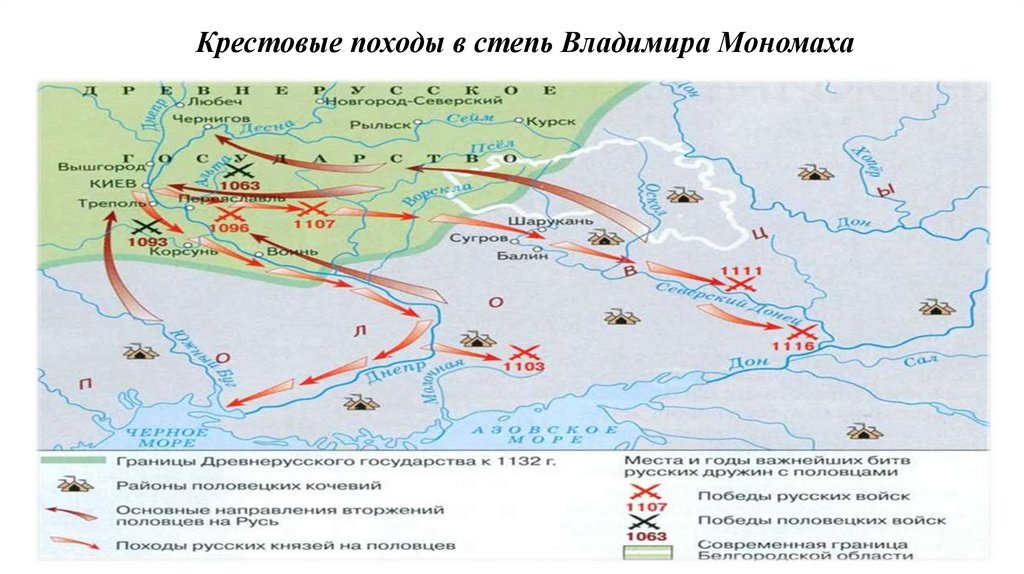 походов в половецкую степь преуспел князь Владимир Мономах. Его правление в