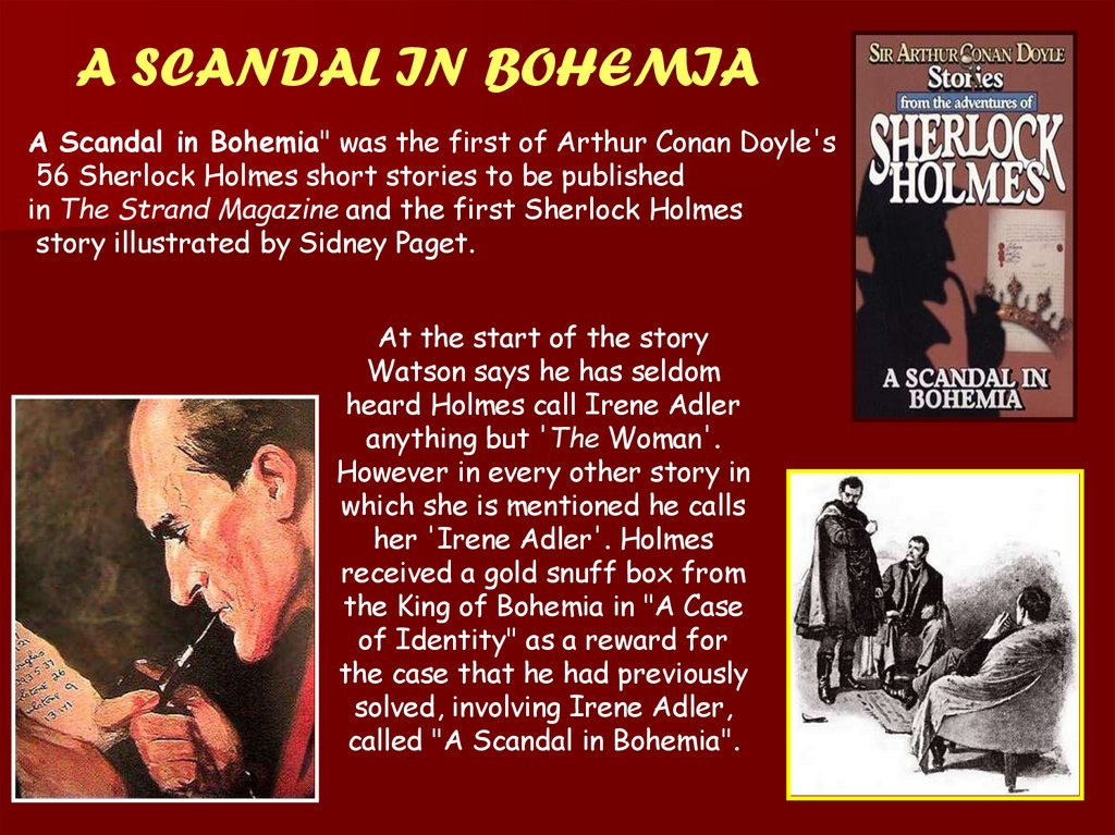 A SCANDAL IN BOHEMIAA Scandal in Bohemia" was the first of Arthur Conan Doyle's