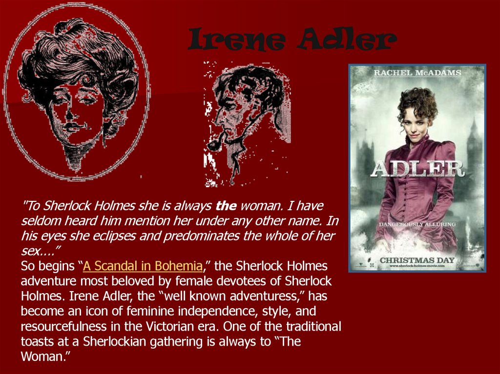Holmes. Irene Adler, the “well known adventuress,” has