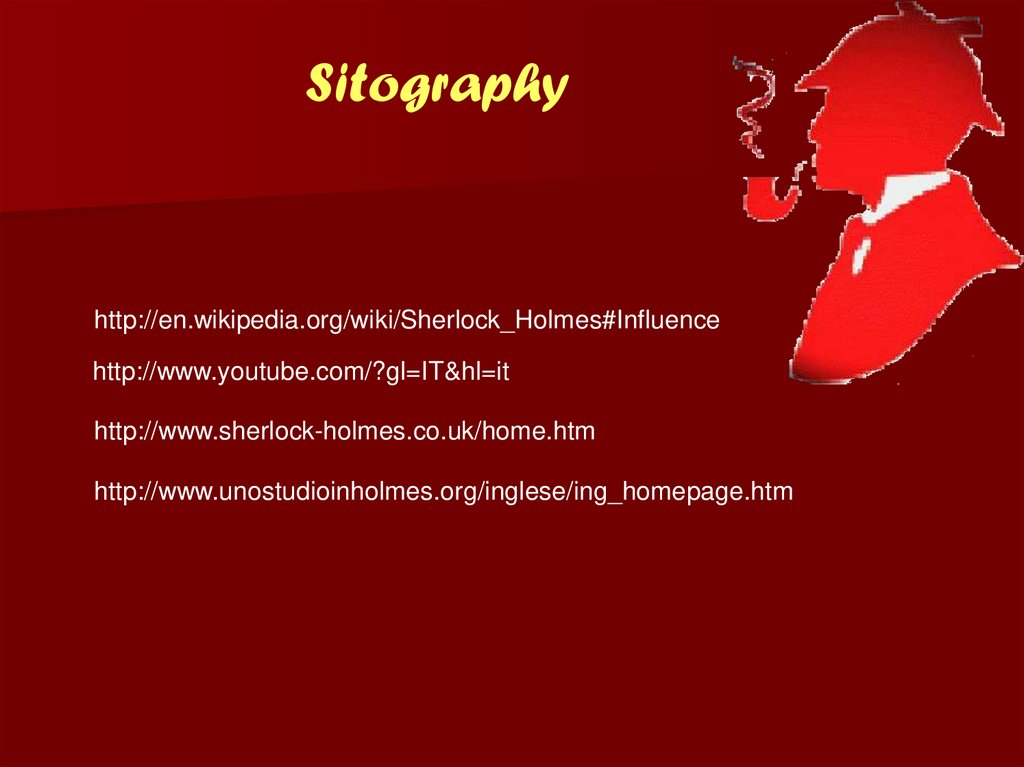 Sitographyhttp://en.wikipedia.org/wiki/Sherlock_Holmes#Influence