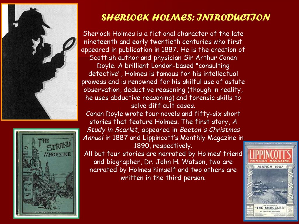 SHERLOCK HOLMES: INTRODUCTIONSherlock Holmes is a fictional character of the late