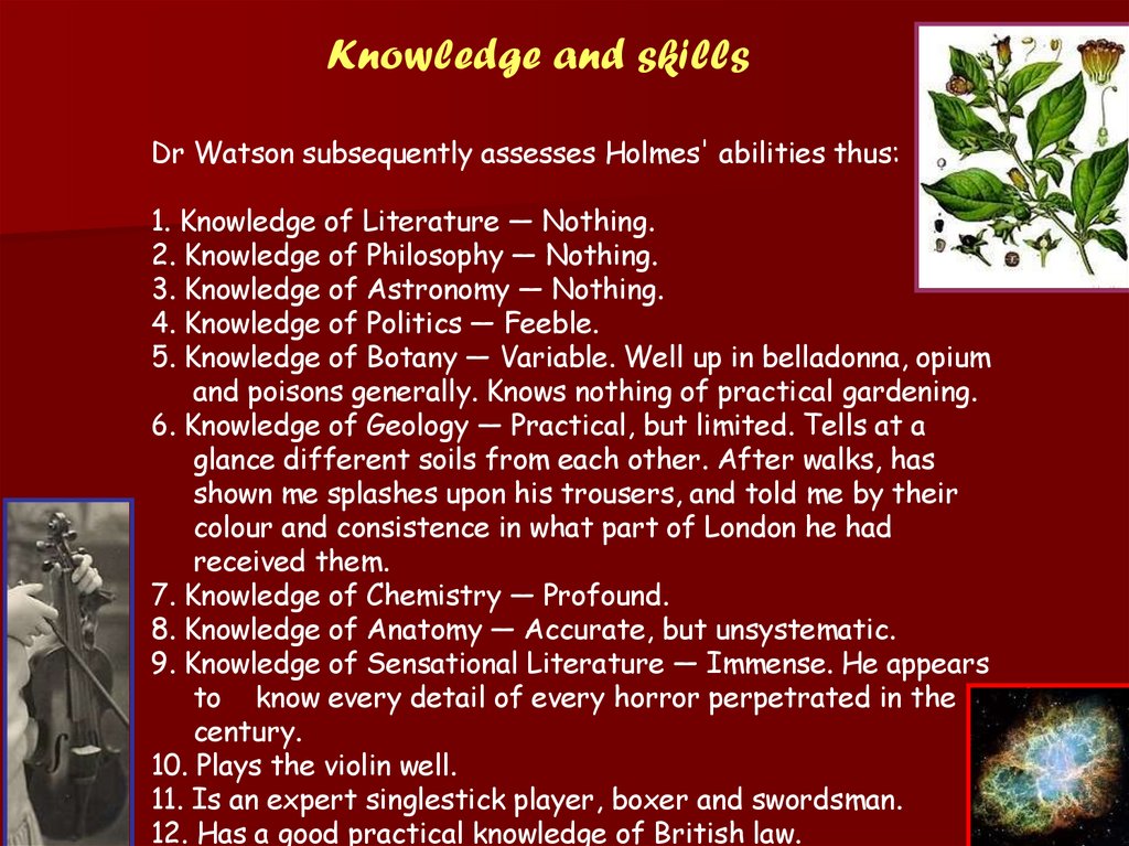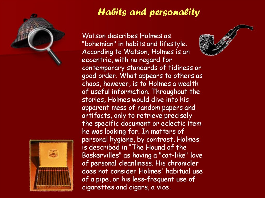 Habits and personalityWatson describes Holmes as