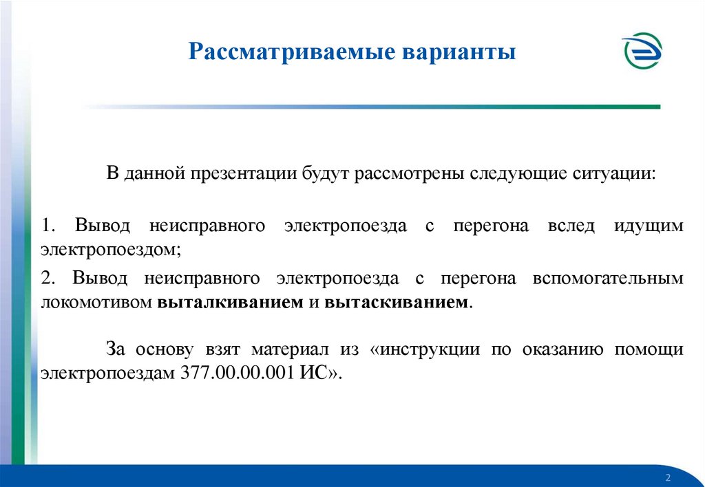 2. Вывод неисправного электропоезда с перегона вспомогательным