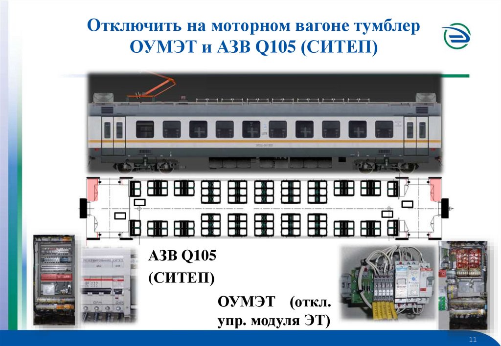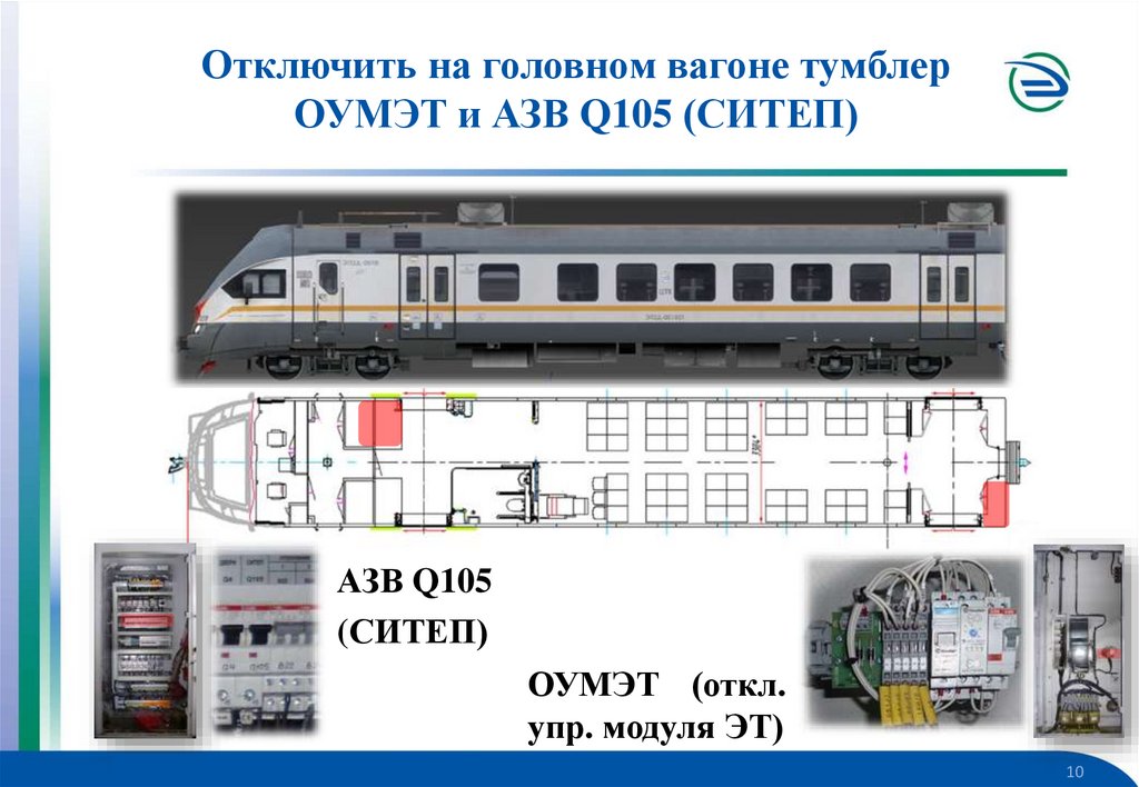 Отключить на моторном вагоне тумблерОУМЭТ и АЗВ Q105 (СИТЕП)