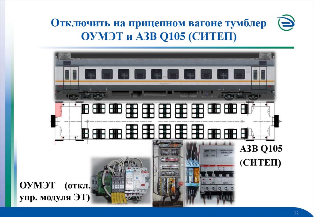 Отключить на прицепном вагоне тумблерОУМЭТ и АЗВ Q105 (СИТЕП)