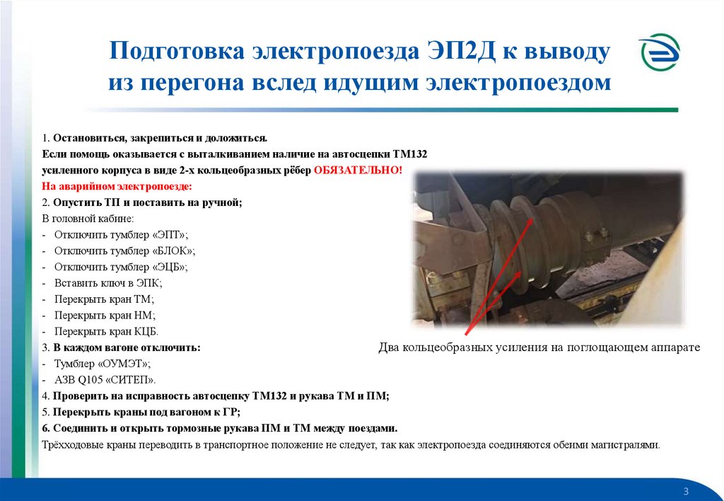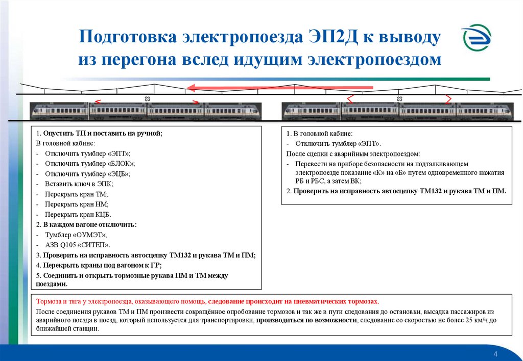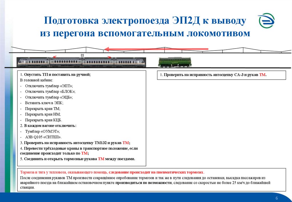 Подготовка электропоезда ЭП2Д к выводуиз перегона вслед идущим электропоездом