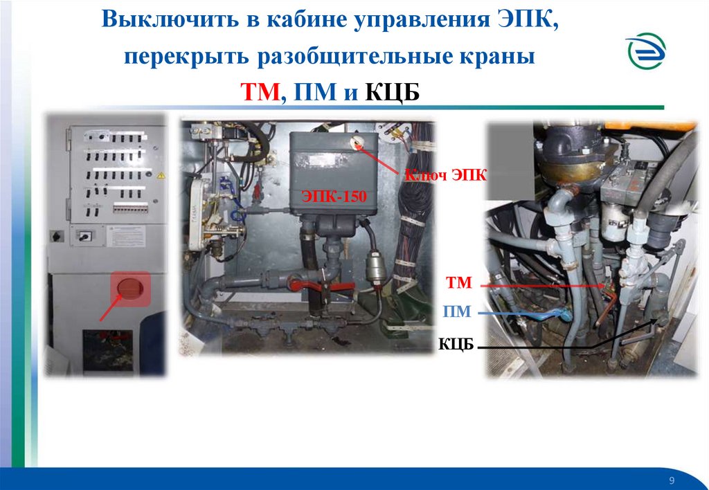 Выключить в кабине управления ЭПК,перекрыть разобщительные краны