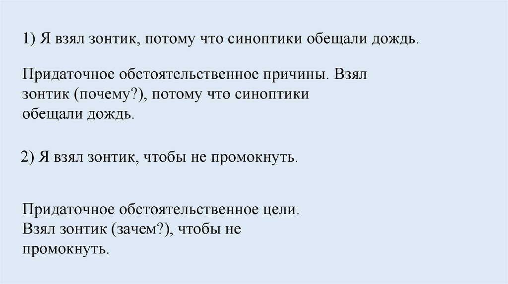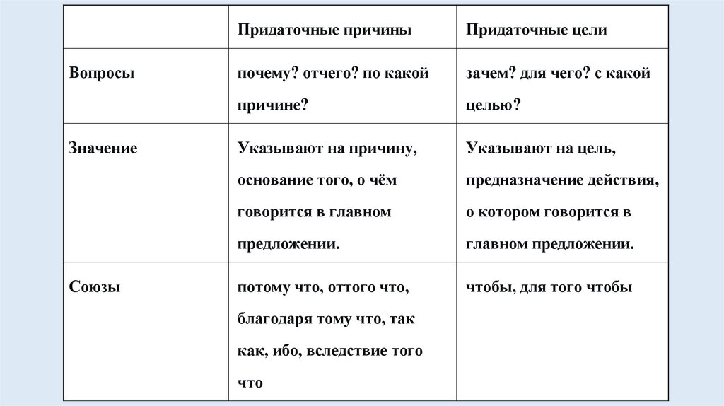 Придаточные предложенияпричины и цели