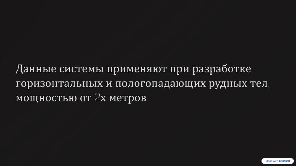 Данные системы применяют при разработкегоризонтальных и пологопадающих рудных тел,