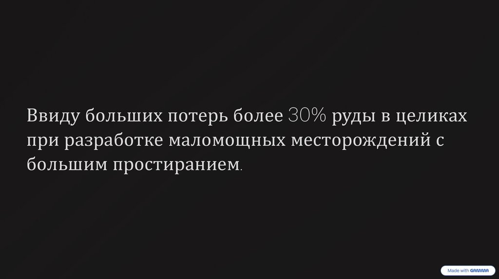 Ввиду больших потерь более 30% руды в целикахпри разработке маломощных месторождений с