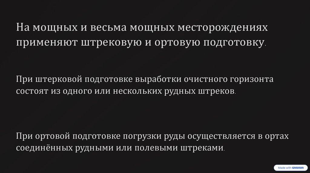 На мощных и весьма мощных месторожденияхприменяют штрековую и ортовую подготовку.