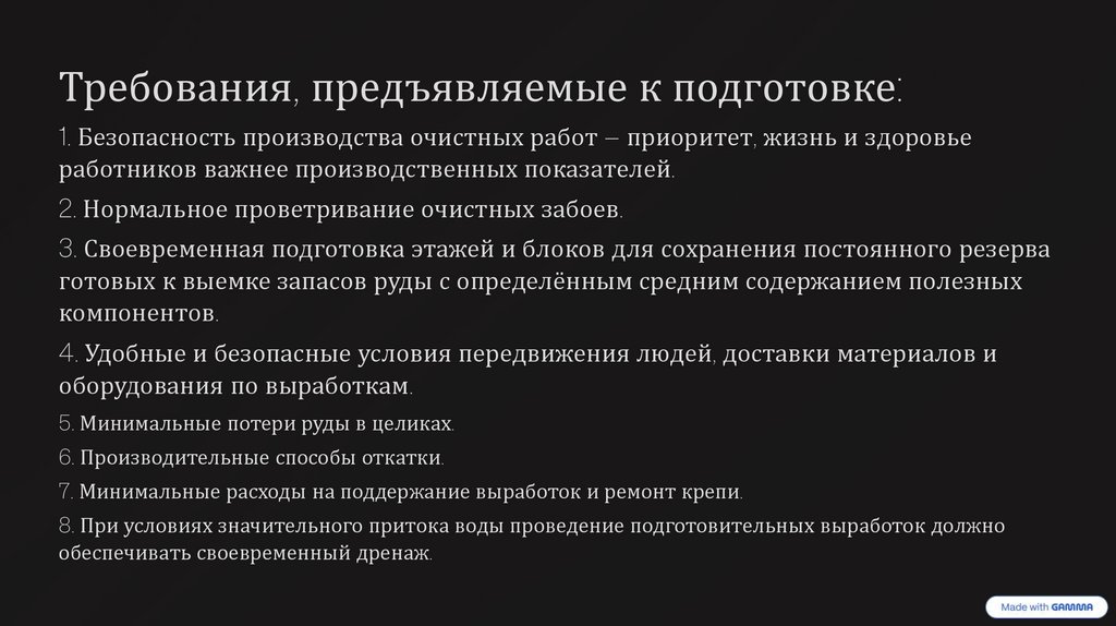 Требования, предъявляемые к подготовке:1. Безопасность производства очистных работ — приоритет, жизнь и здоровье