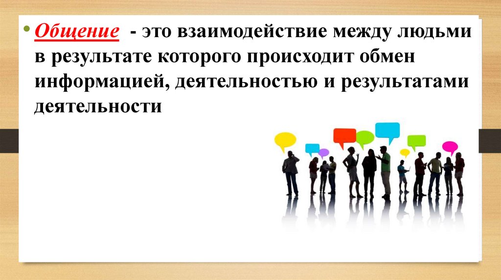 • Общение - это взаимодействие между людьмив результате которого происходит обмен