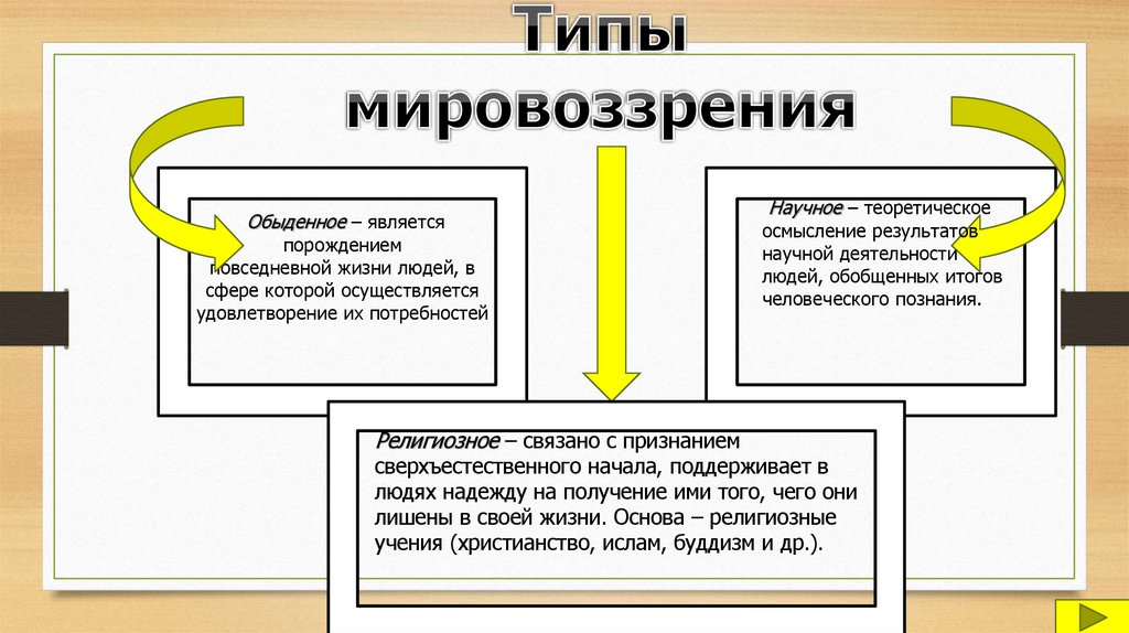 Типы мировоззренияОбыденное (житейское):