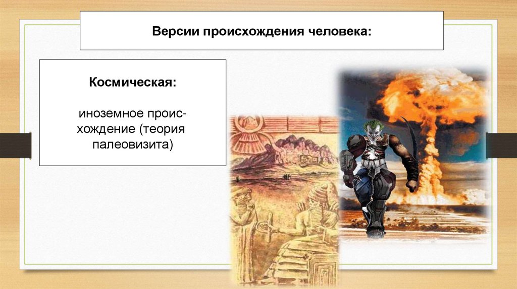 Версии происхождения человека:Космическая: