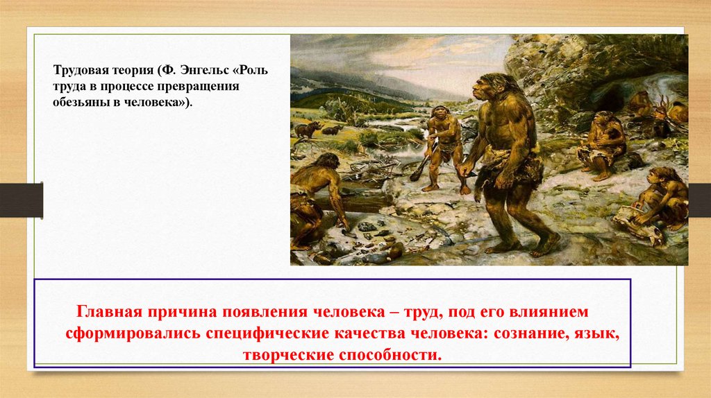 Главная причина появления человека – труд, под его влиянием