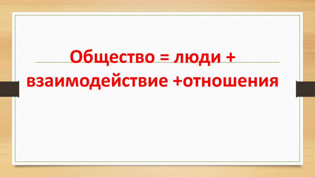 Общество = люди +взаимодействие +отношения