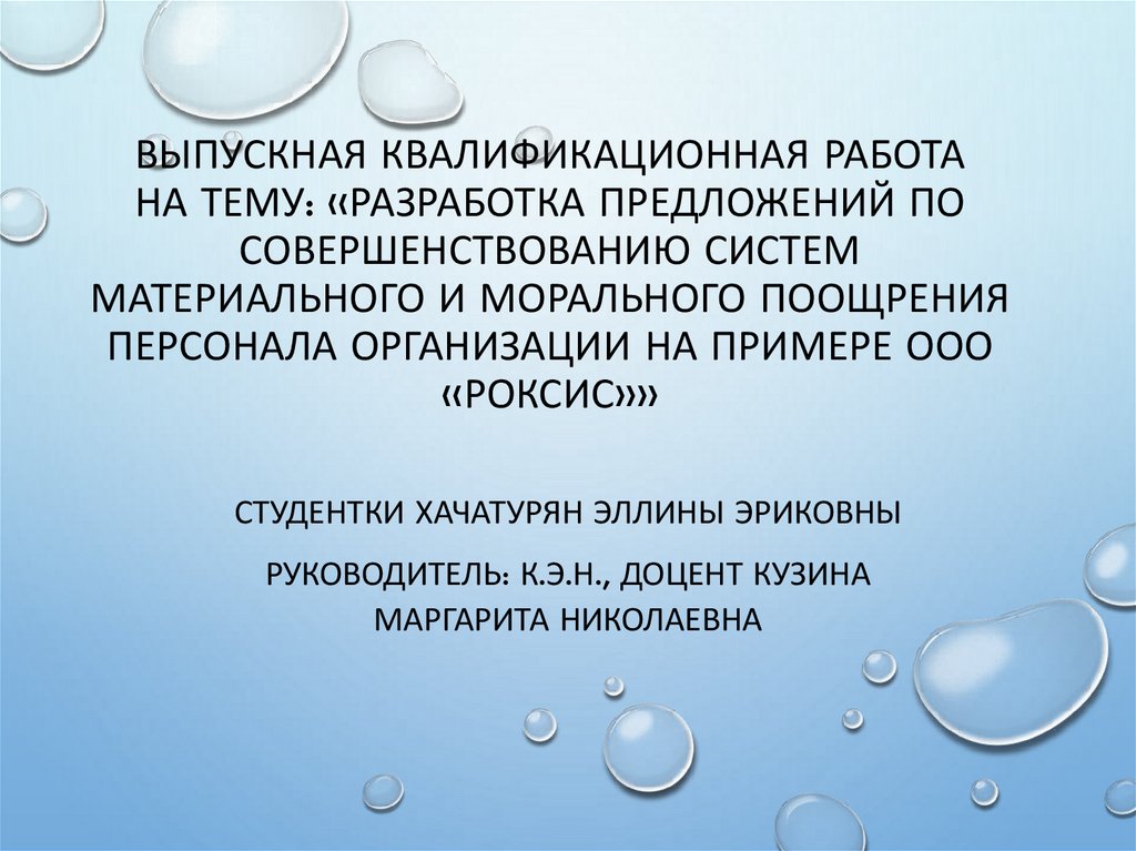 1. выпускная квалификационная работа на тему: «Разработка предложений по совершенствованию систем материального и морального