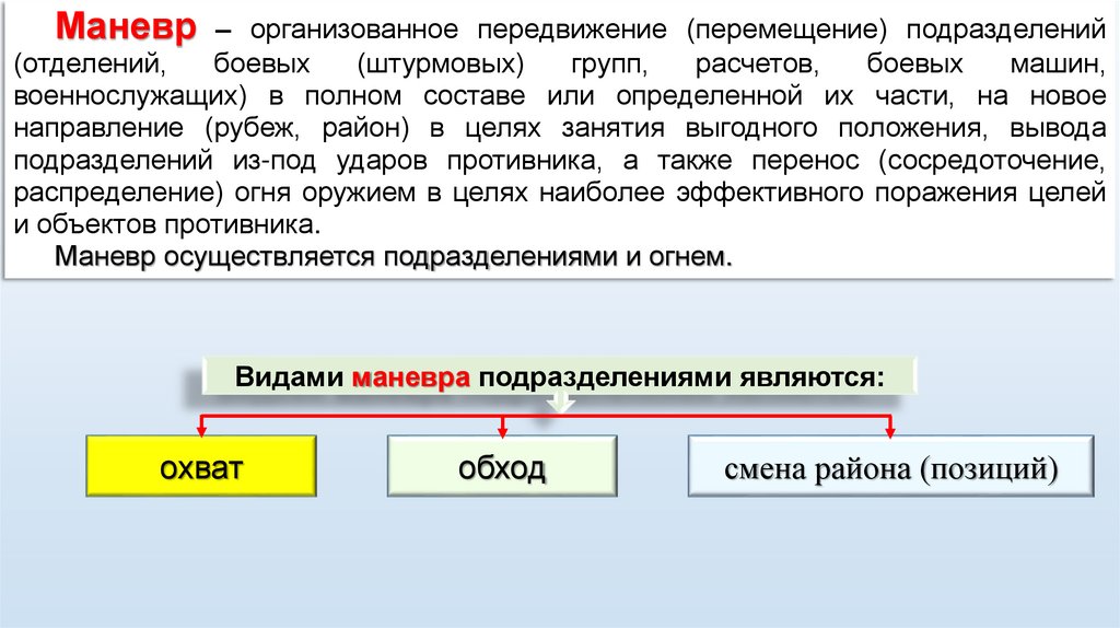 Маневр – организованное передвижение (перемещение) подразделений(отделений,