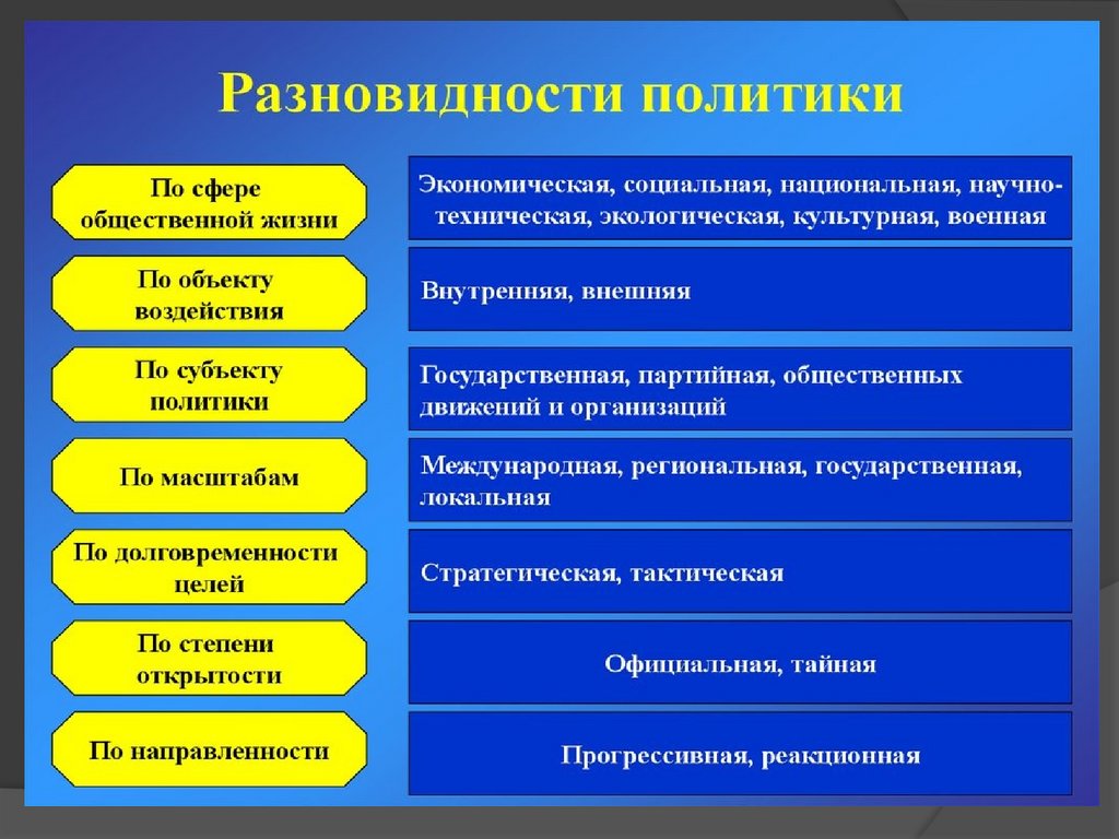 - формы и направления политической