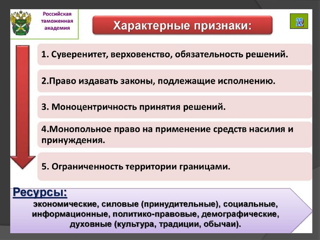 Политическая властьПризнаки