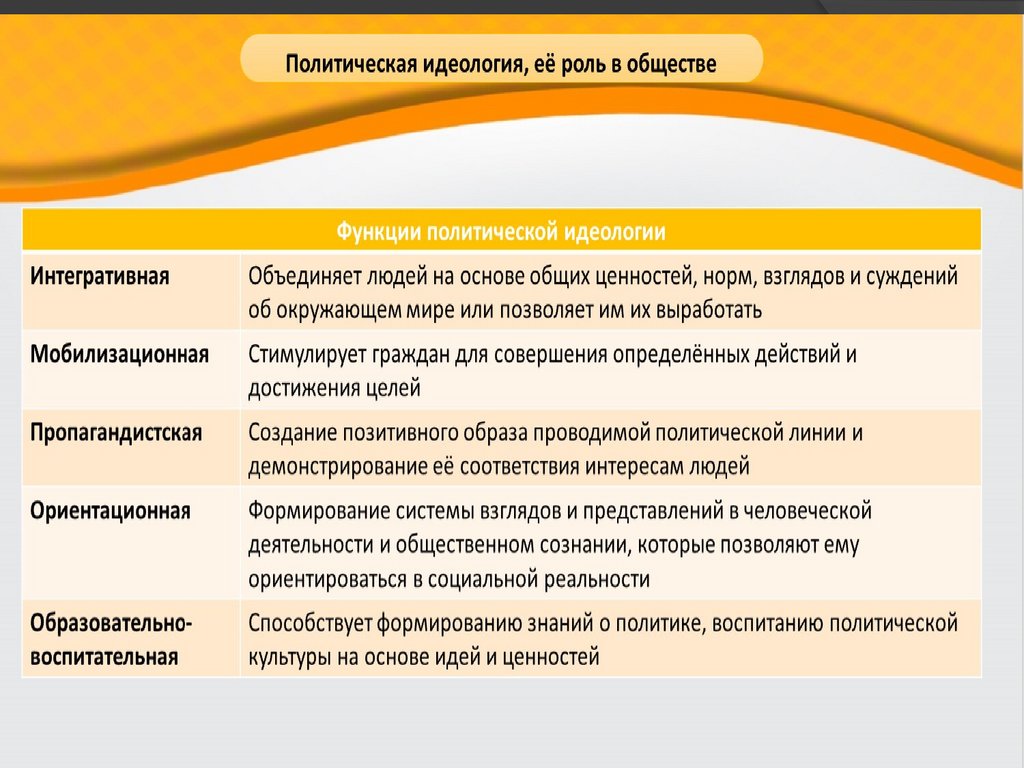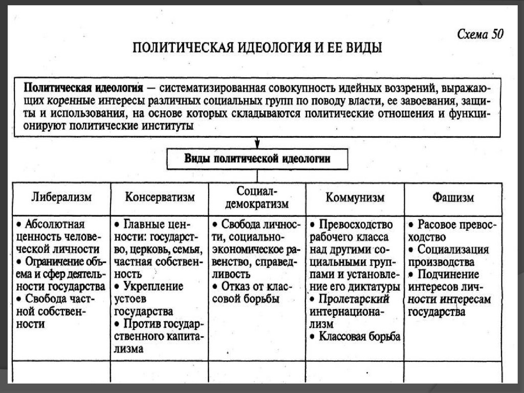 - политическую идеологию