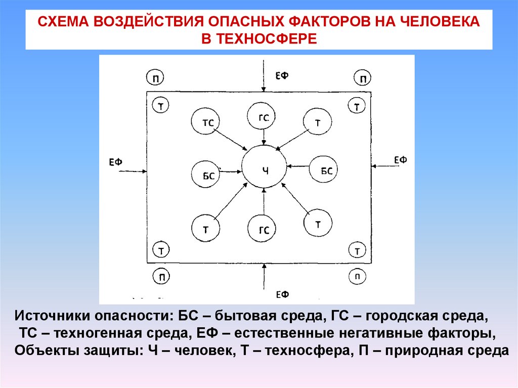 СХЕМА ВОЗДЕЙСТВИЯ ОПАСНЫХ ФАКТОРОВ НА ЧЕЛОВЕКАВ ТЕХНОСФЕРЕ