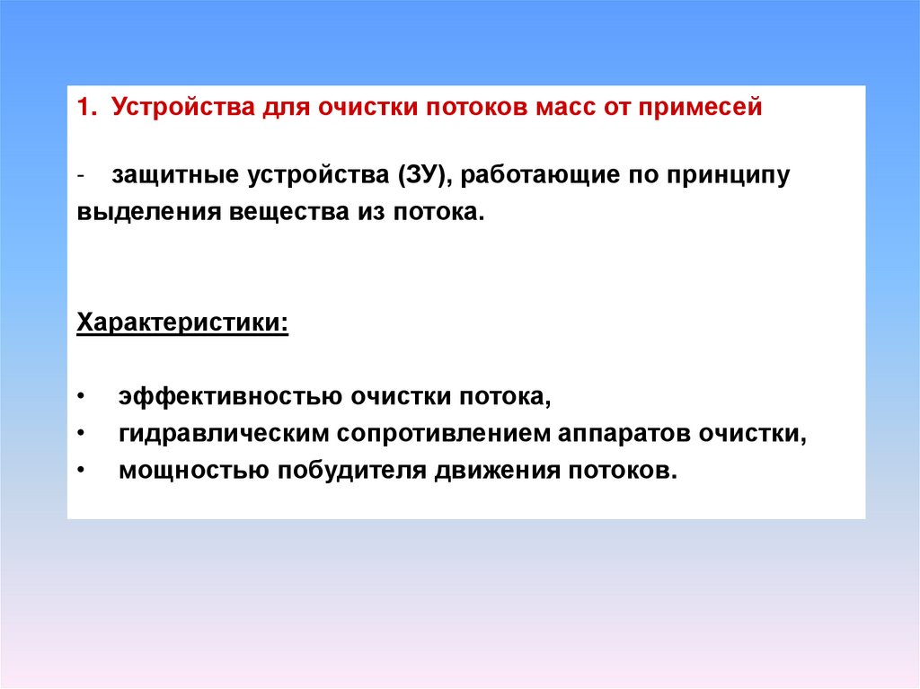 1. Устройства для очистки потоков масс от примесей- защитные устройства (ЗУ), работающие по принципу