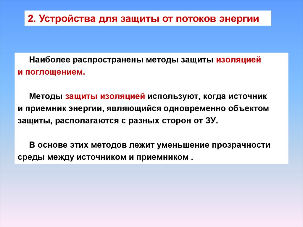 2. Устройства для защиты от потоков энергииНаиболее распространены методы защиты изоляцией