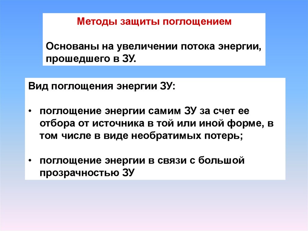 Методы защиты поглощениемОснованы на увеличении потока энергии,