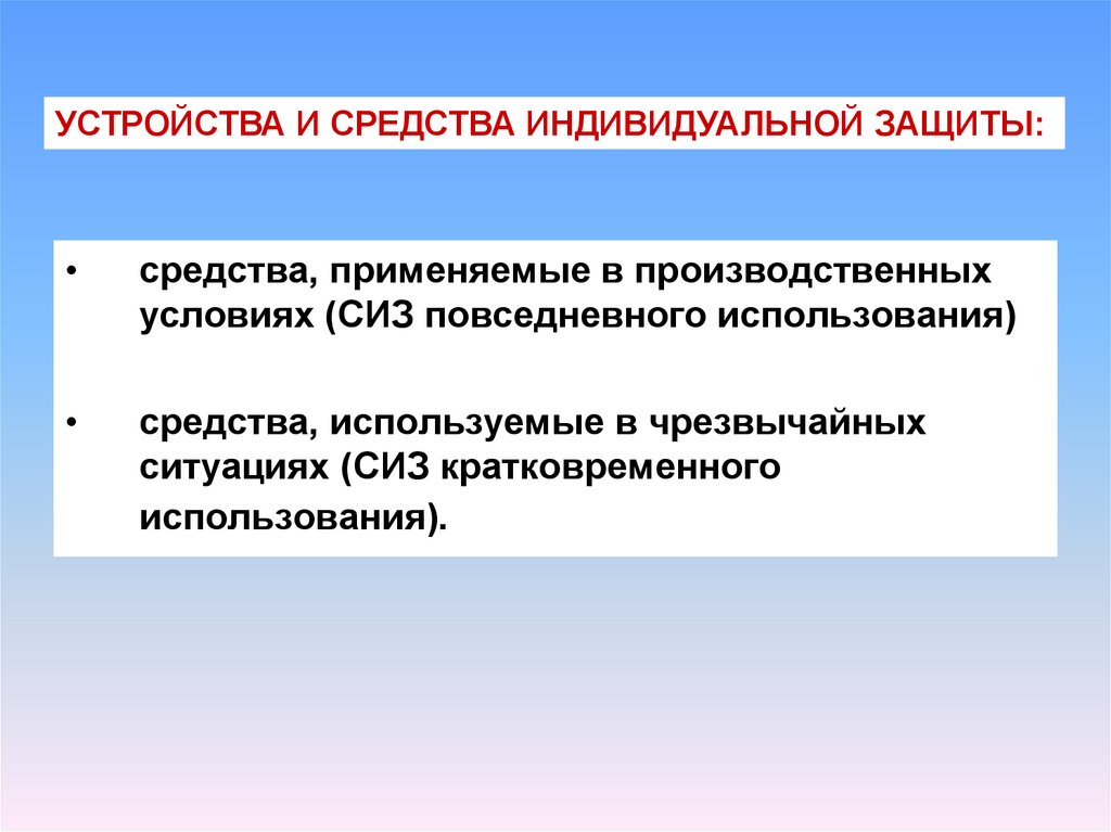 УСТРОЙСТВА И СРЕДСТВА ИНДИВИДУАЛЬНОЙ ЗАЩИТЫ:средства, применяемые в производственных
