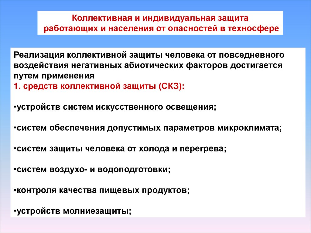 Коллективная и индивидуальная защитаработающих и населения от опасностей в техносфере