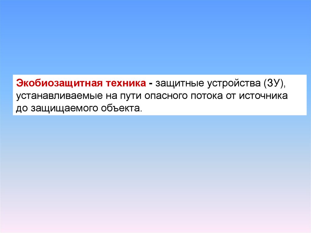 Экобиозащитная техника - защитные устройства (ЗУ),устанавливаемые на пути опасного потока от источника