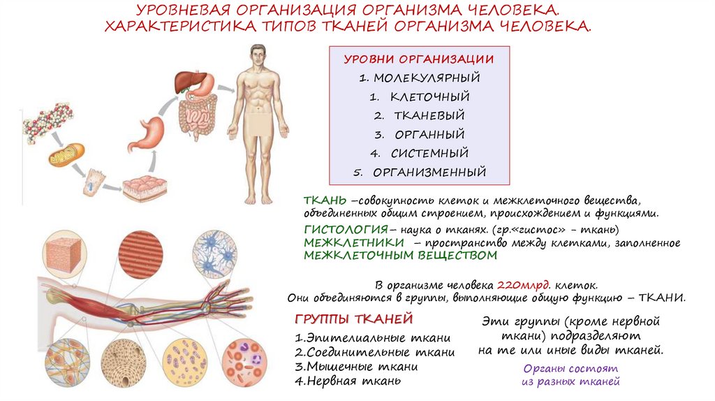 УРОВНЕВАЯ ОРГАНИЗАЦИЯ ОРГАНИЗМА ЧЕЛОВЕКА.ХАРАКТЕРИСТИКА ТИПОВ ТКАНЕЙ ОРГАНИЗМА ЧЕЛОВЕКА.
