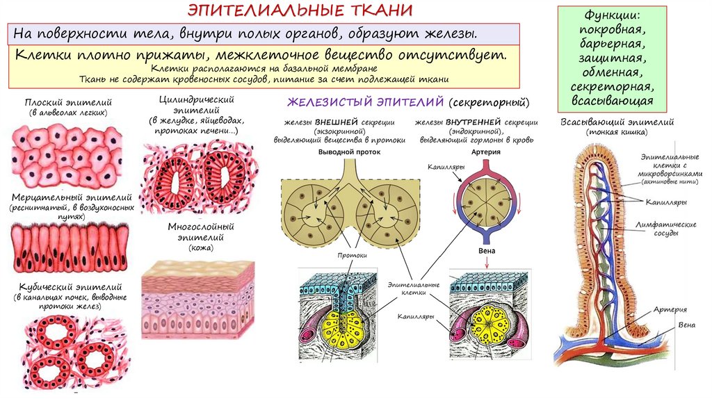 ЭПИТЕЛИАЛЬНЫЕ ТКАНИНа поверхности тела, внутри полых органов, образуют железы.
