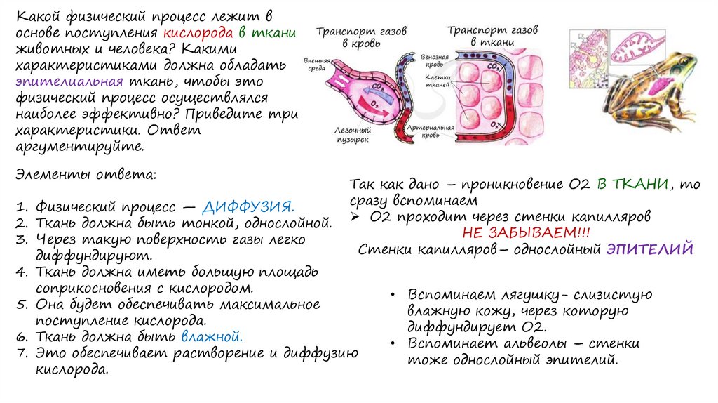 Какой физический процесс лежит воснове поступления кислорода в ткани