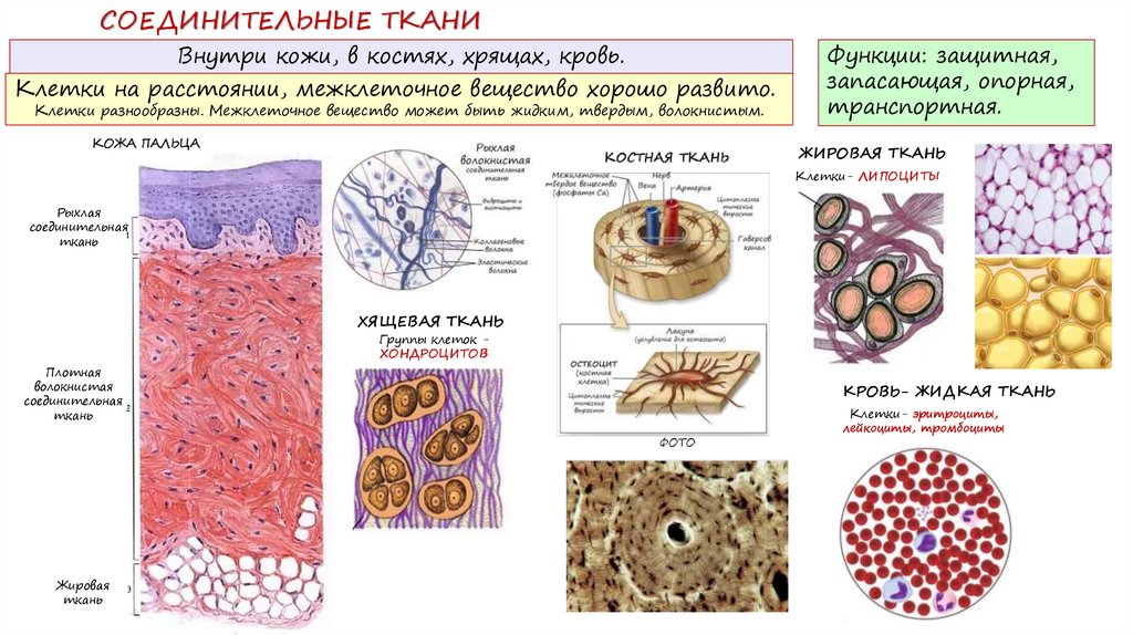 СОЕДИНИТЕЛЬНЫЕ ТКАНИВнутри кожи, в костях, хрящах, кровь.