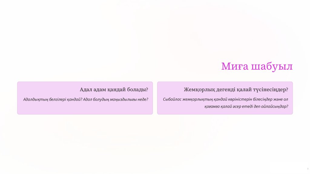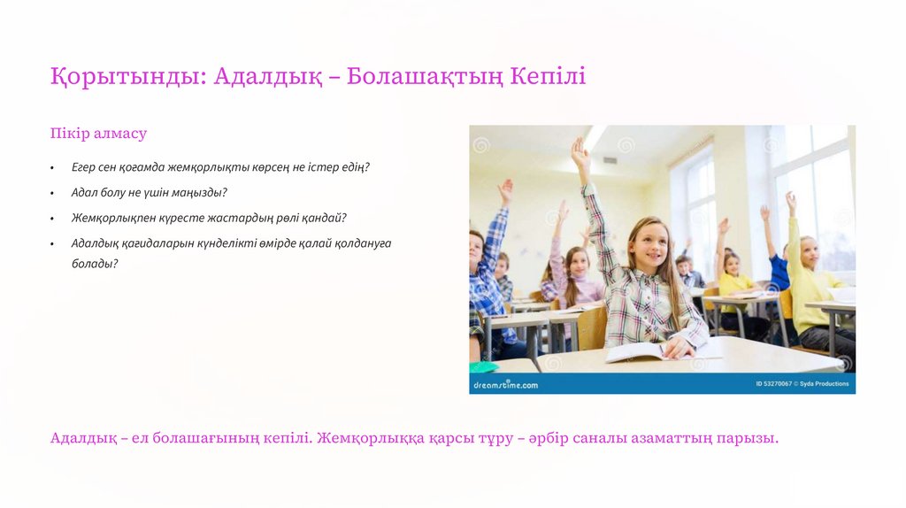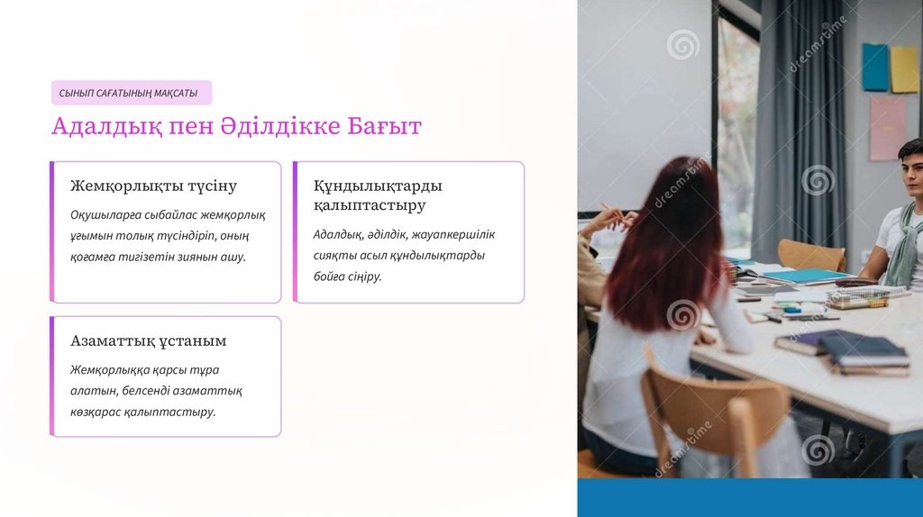СЫНЫП САҒАТЫНЫҢ МАҚСАТЫАдалдық пен Әділдікке Бағыт