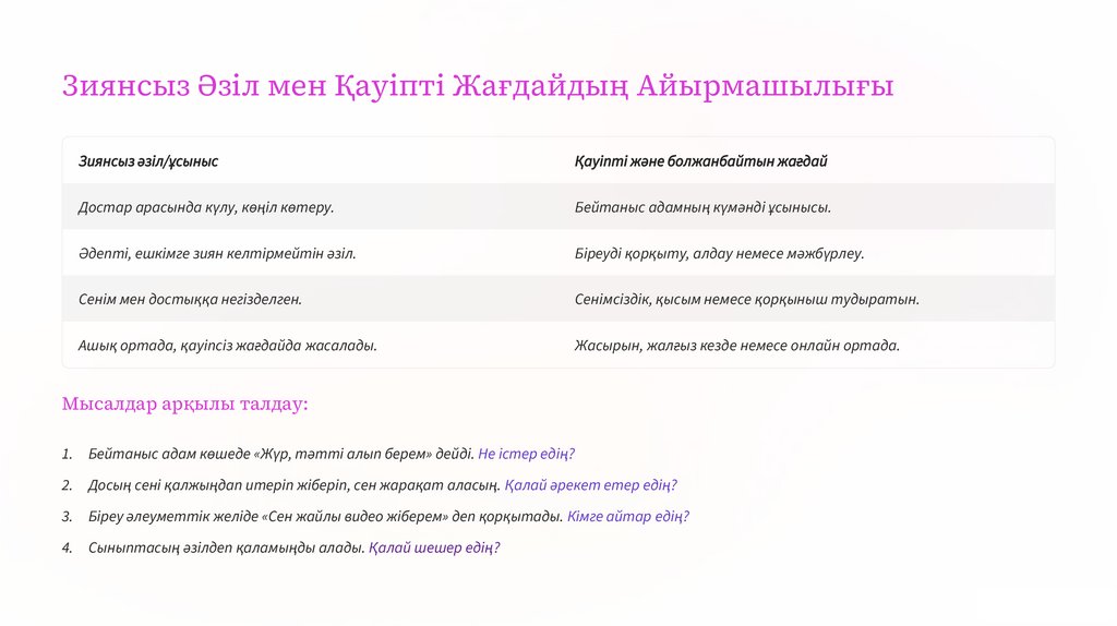 Зиянсыз Әзіл мен Қауіпті Жағдайдың АйырмашылығыЗиянсыз әзіл/ұсыныс
