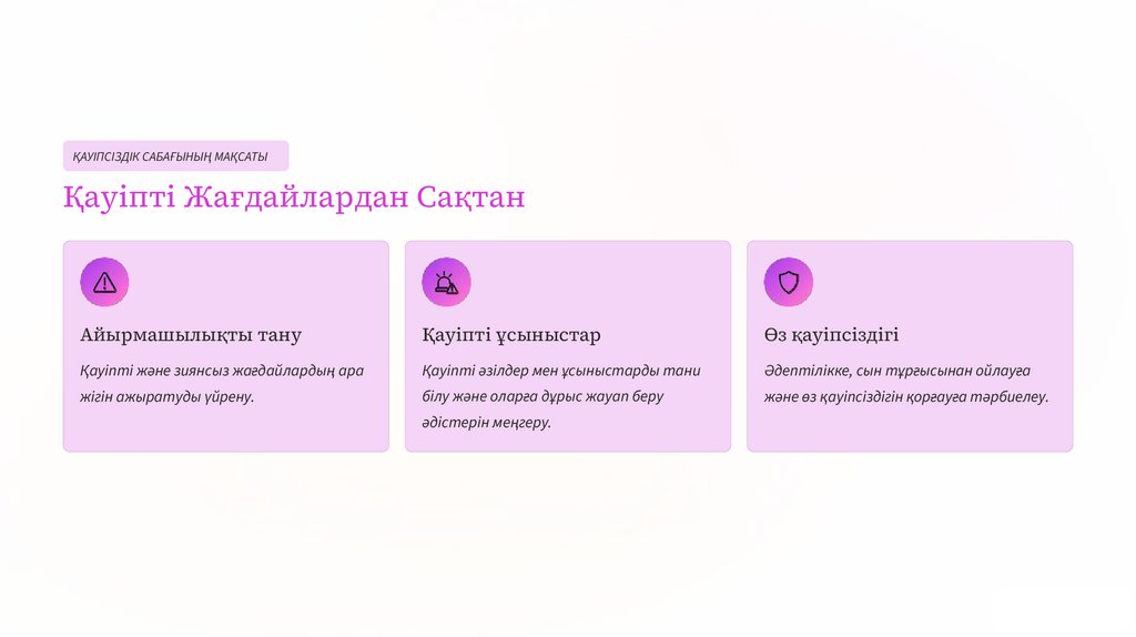 ҚАУІПСІЗДІК САБАҒЫНЫҢ МАҚСАТЫҚауіпті Жағдайлардан Сақтан