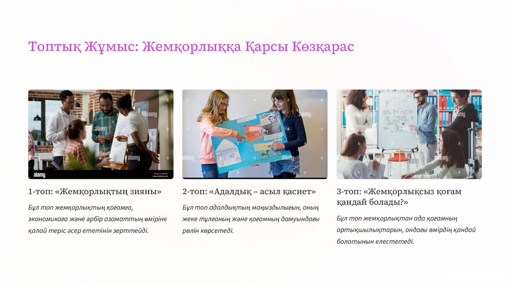 Топтық Жұмыс: Жемқорлыққа Қарсы Көзқарас1-топ: «Жемқорлықтың зияны»