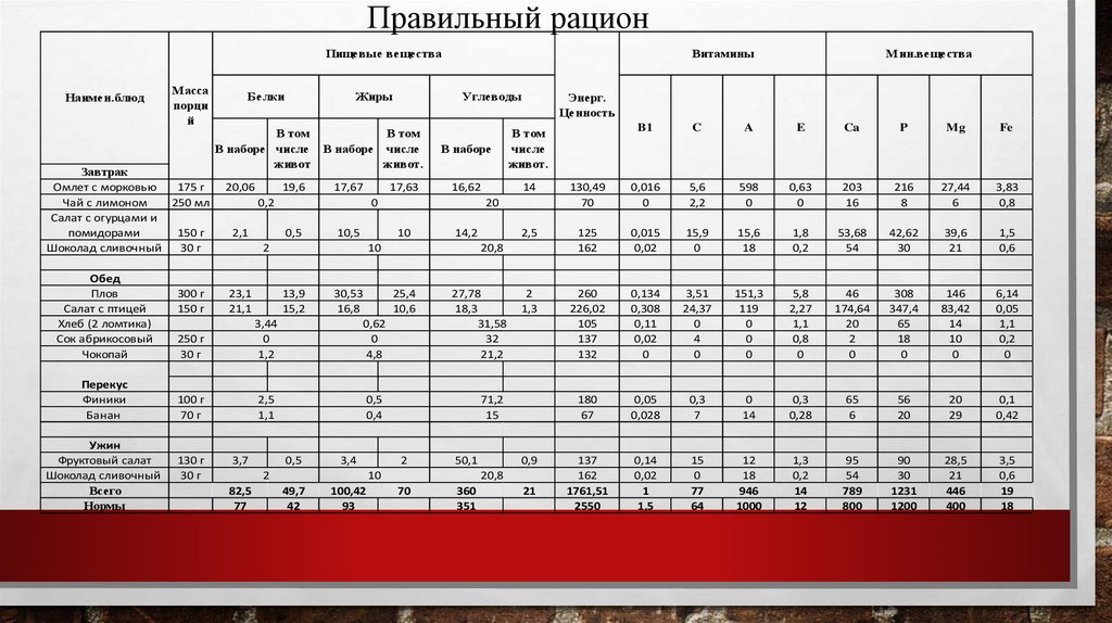 Правильный рационПищевые вещества