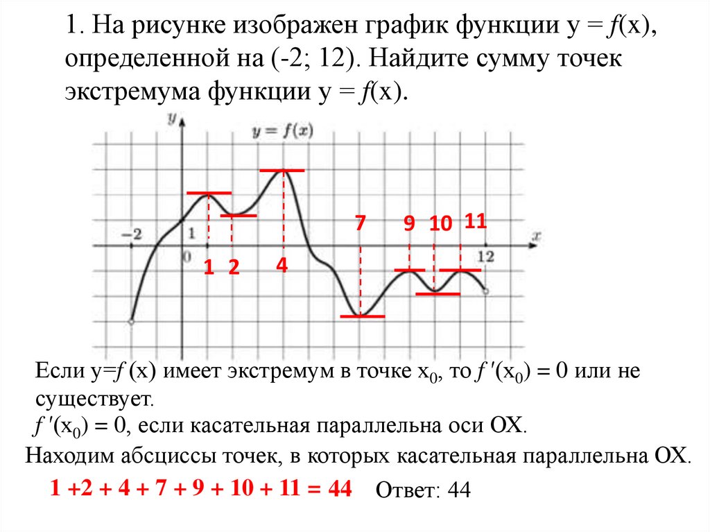 1. На рисунке изображен график функции у = f(x),определенной на (-2; 12). Найдите сумму точек