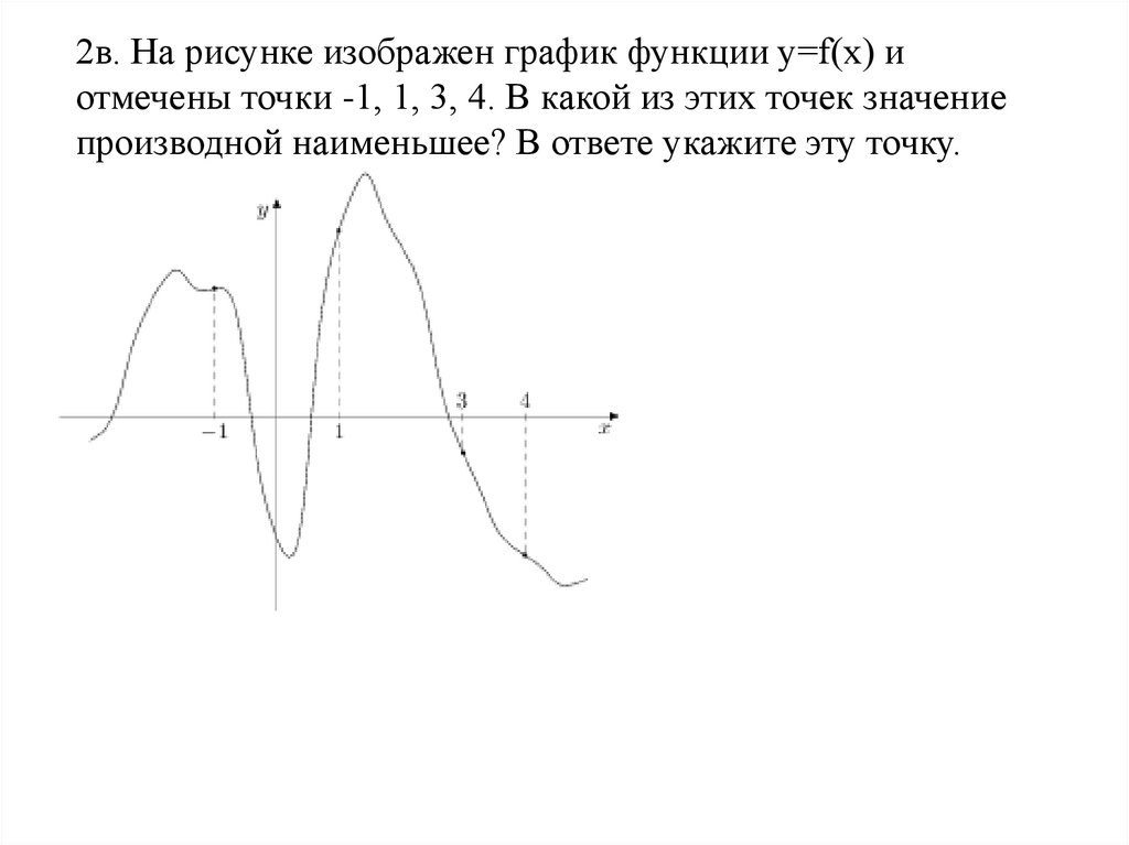 2в. На рисунке изображен график функции y=f(x) иотмечены точки -1, 1, 3, 4. В какой из этих точек значение